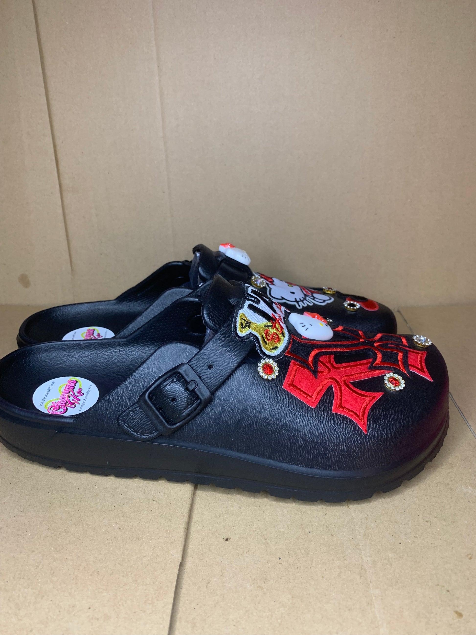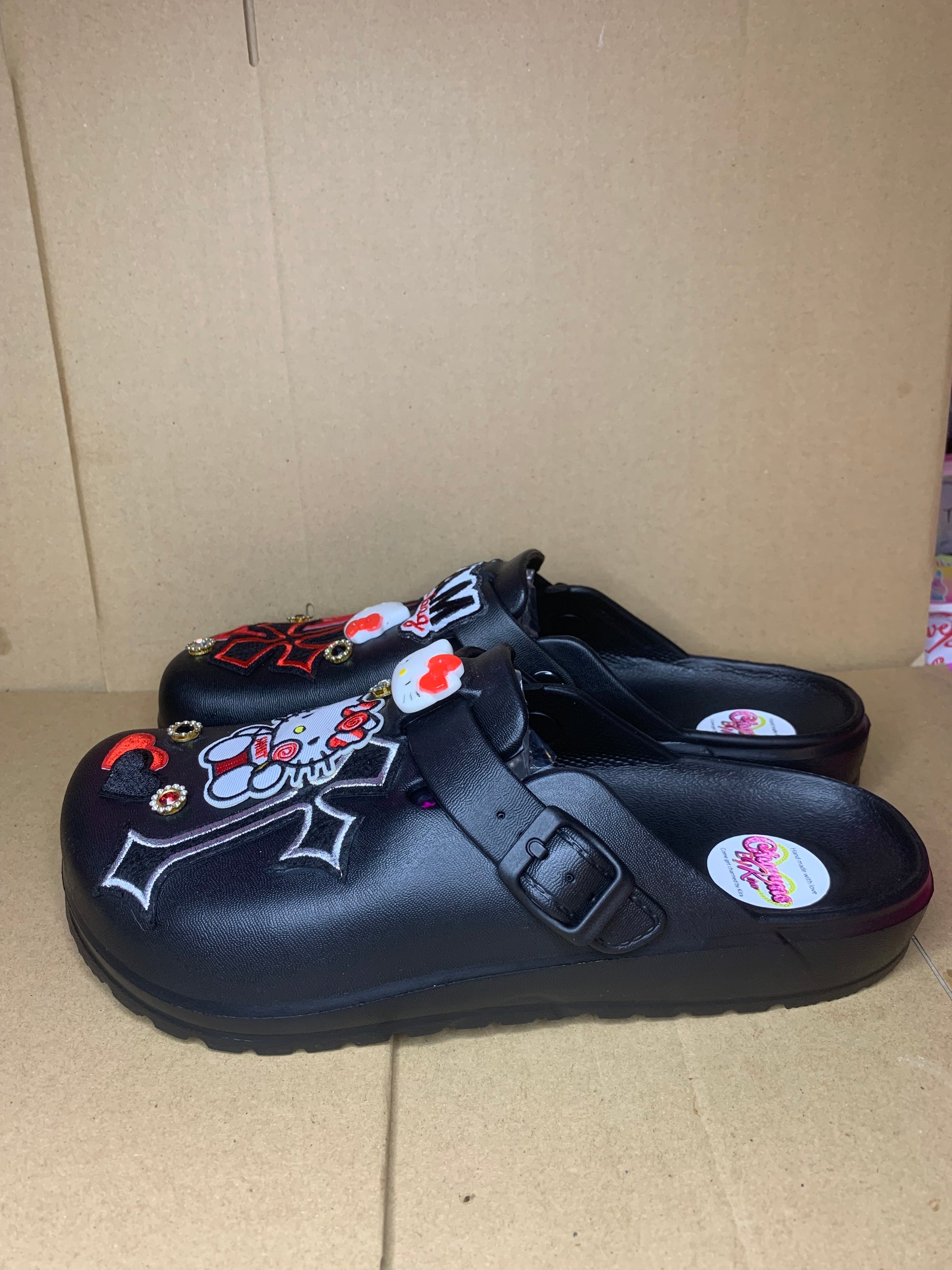 This pretty hello kitty set comes with clogs,trucker hat,mini bag with keychain attached,& 2 charm bangles😘