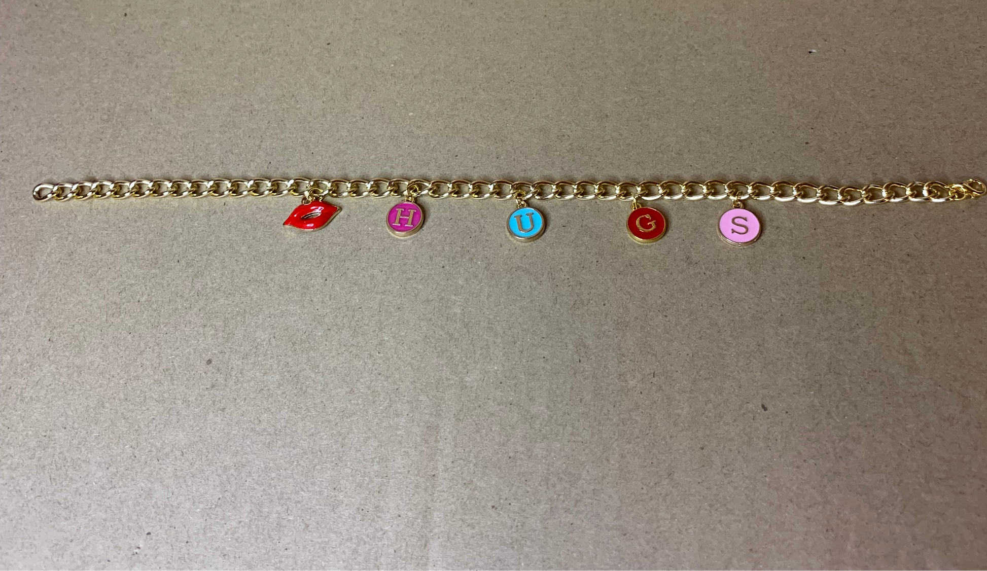 This anklet says HUGS🫂& it’s 11 1/2 inches long adjustable to fit all adults & young adults😘