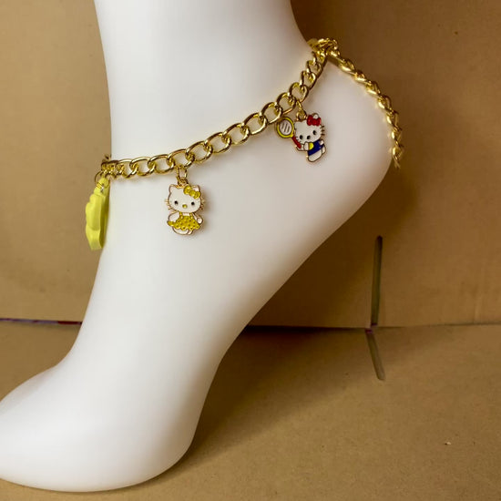 This hello kitty set comes with an anklet that’s 11 1/2 inches long adjustable to fit all adults & young adults & 2 bangles that’s expandable to fit all😘