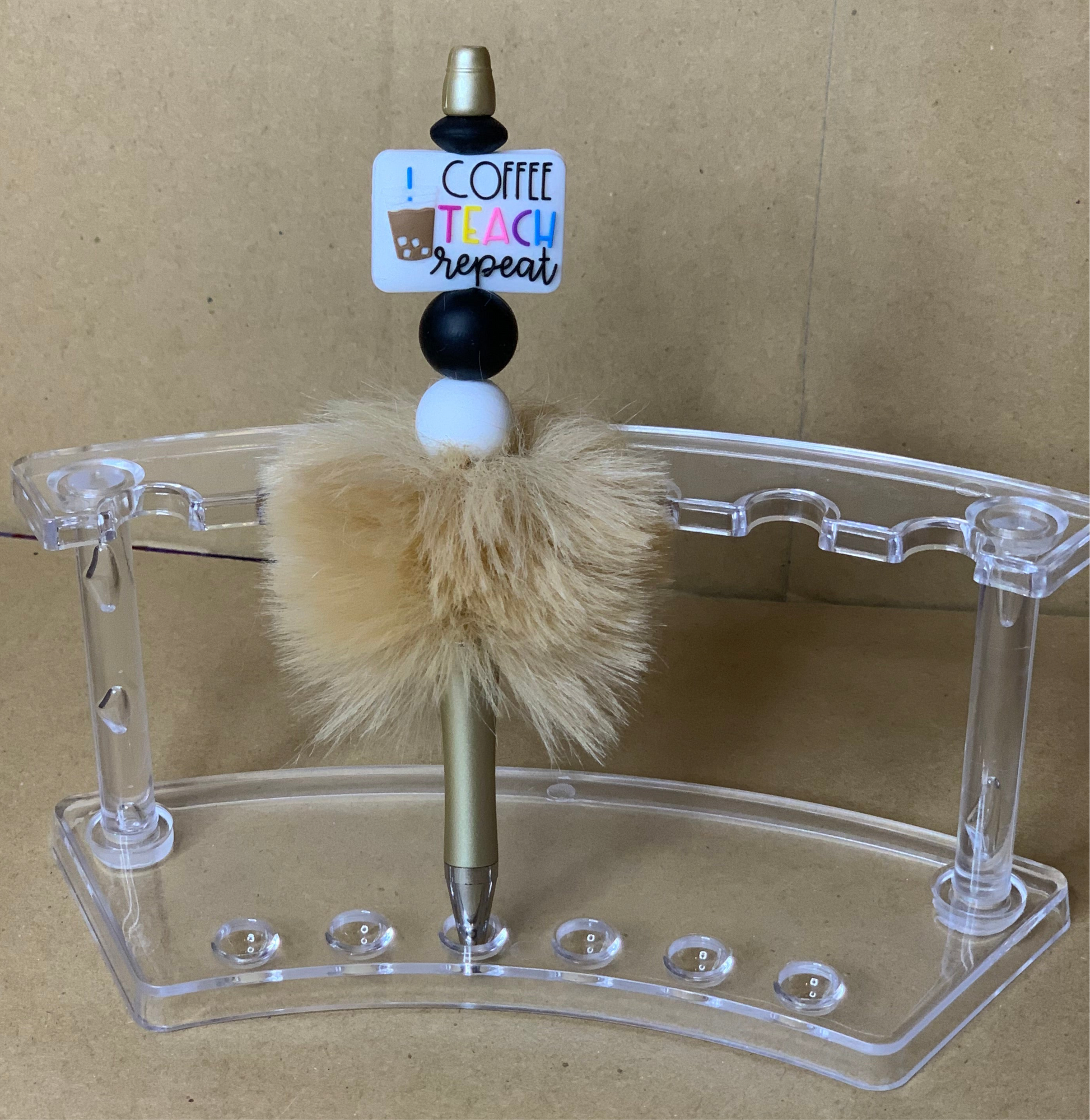 This beautiful pen 🖊️with fur says “coffee teach repeat” & comes with one refillable ink & a notepad 🗒️