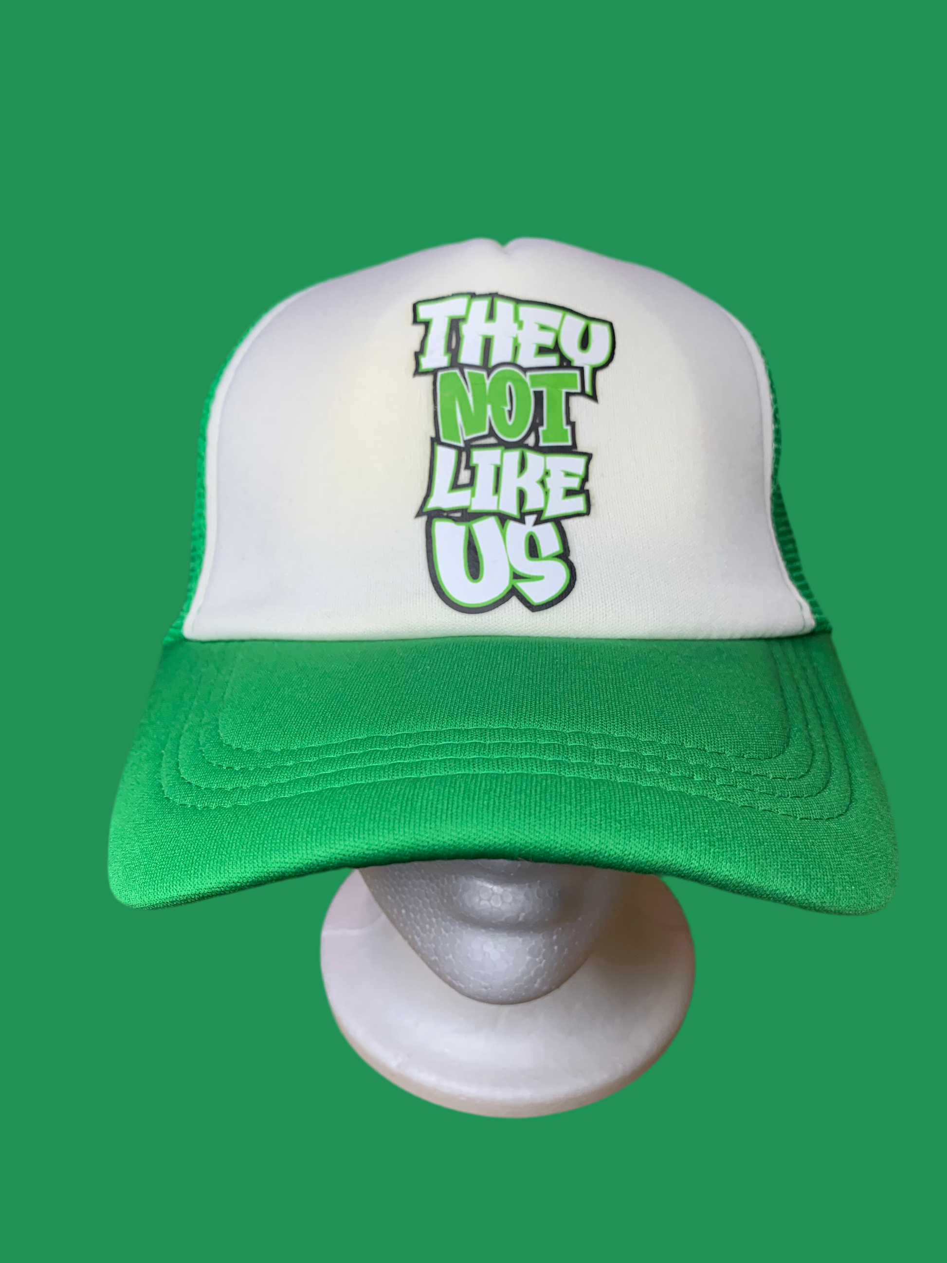 This hat says “THEY NOT LIKE US“ & it’s adjustable to fit all adults & young adults with the SnapBack💚