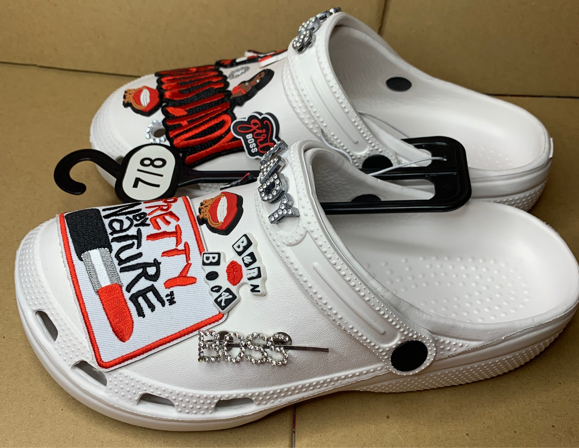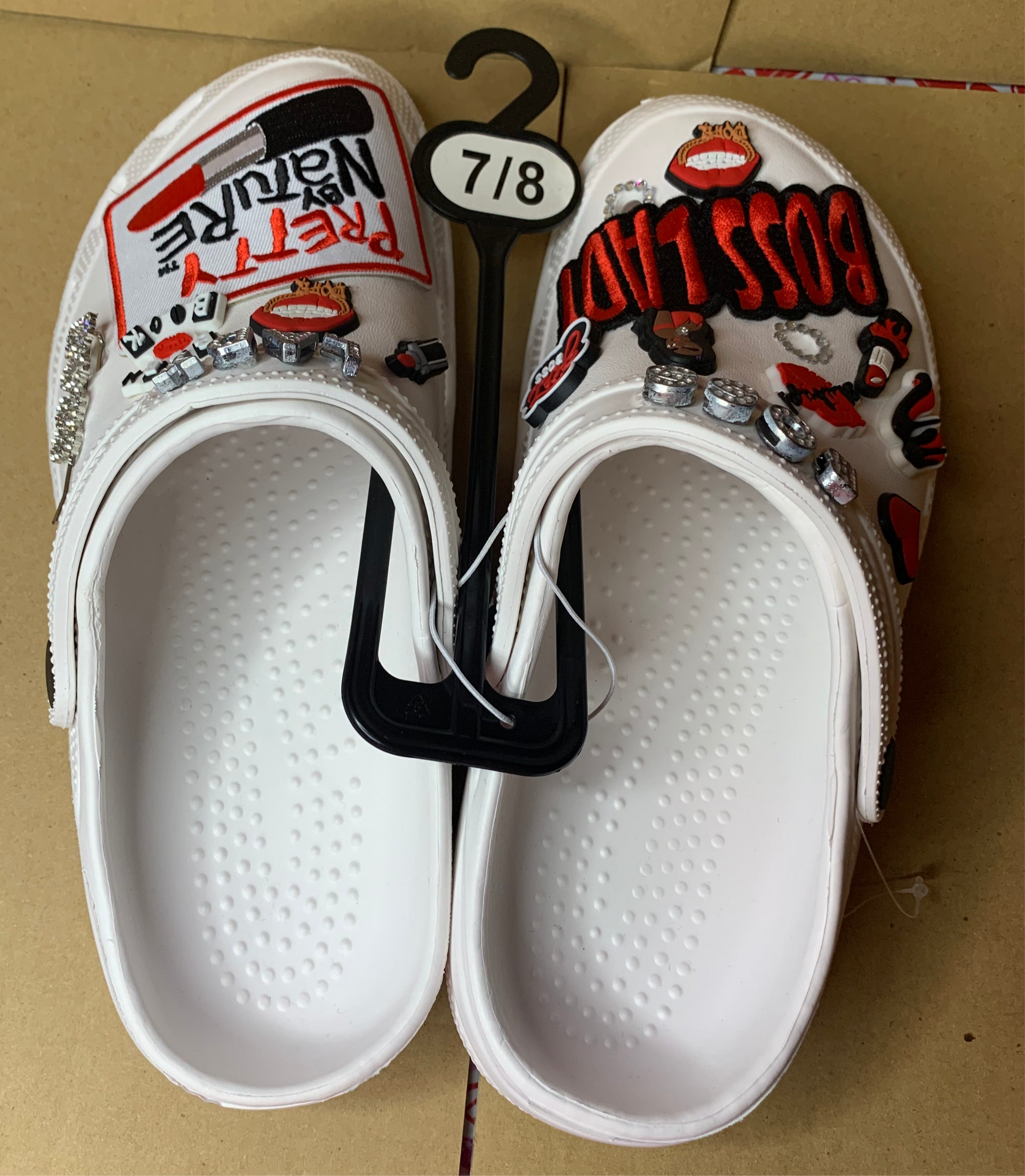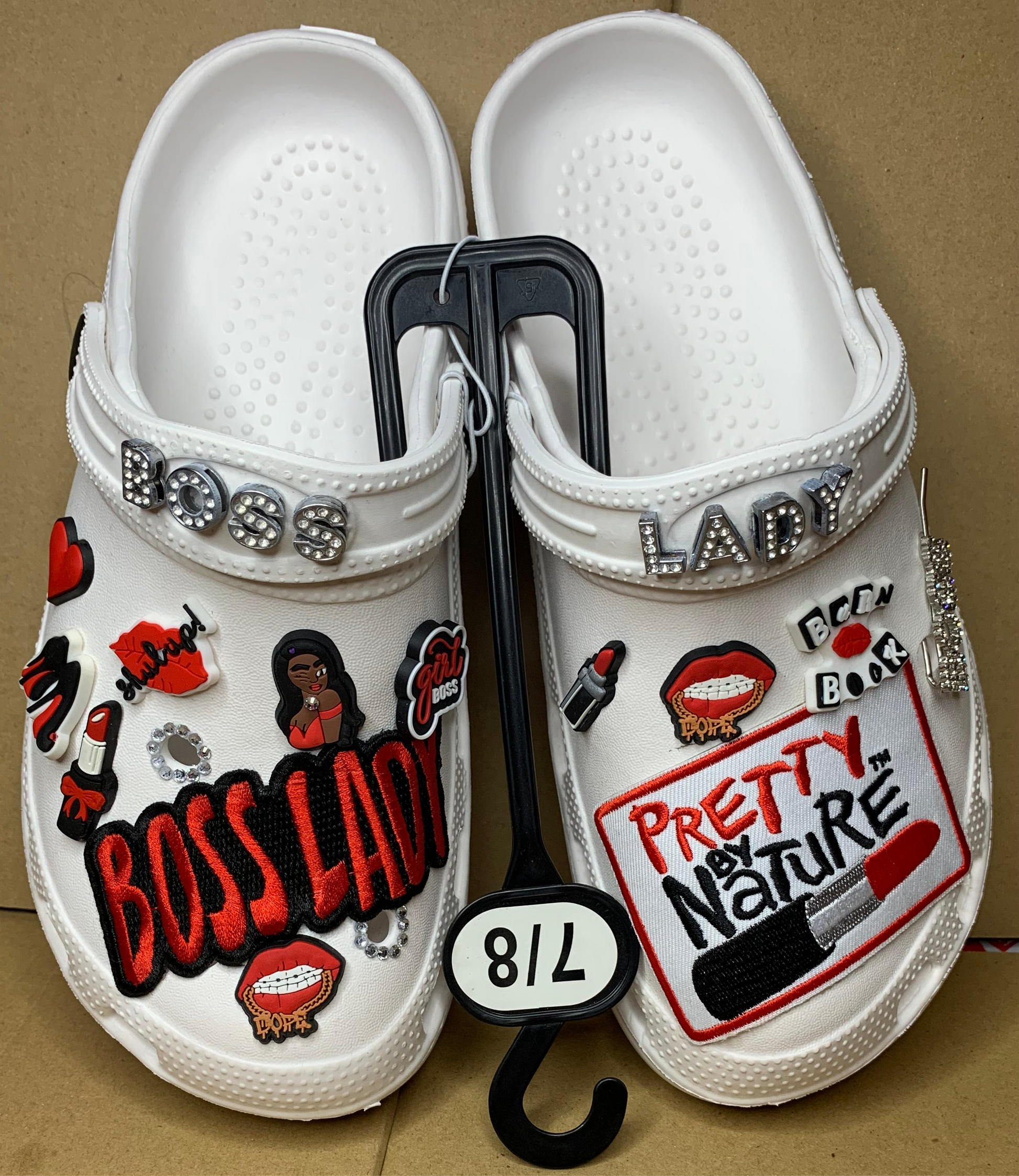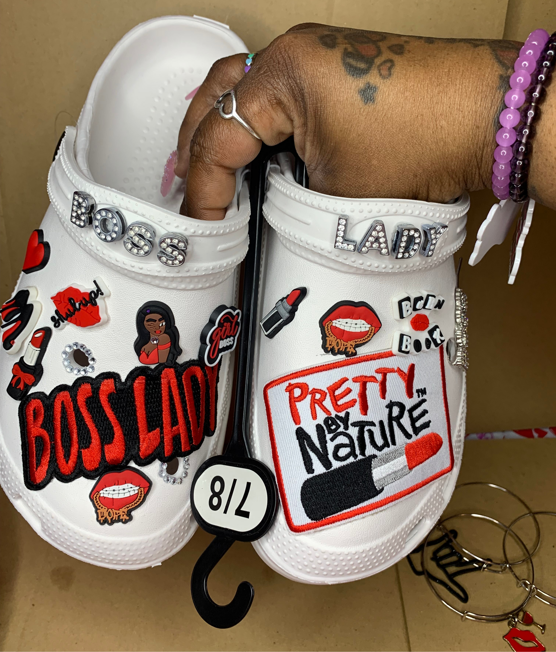 ❤️This pretty BOSS LADY set comes with a SnapBack trucker hat 🧢that’s adjustable to fit all adults & young adults with the SnapBack & clogs size 7/8 & 3 expandable charm bangles that fits most wrist❤️