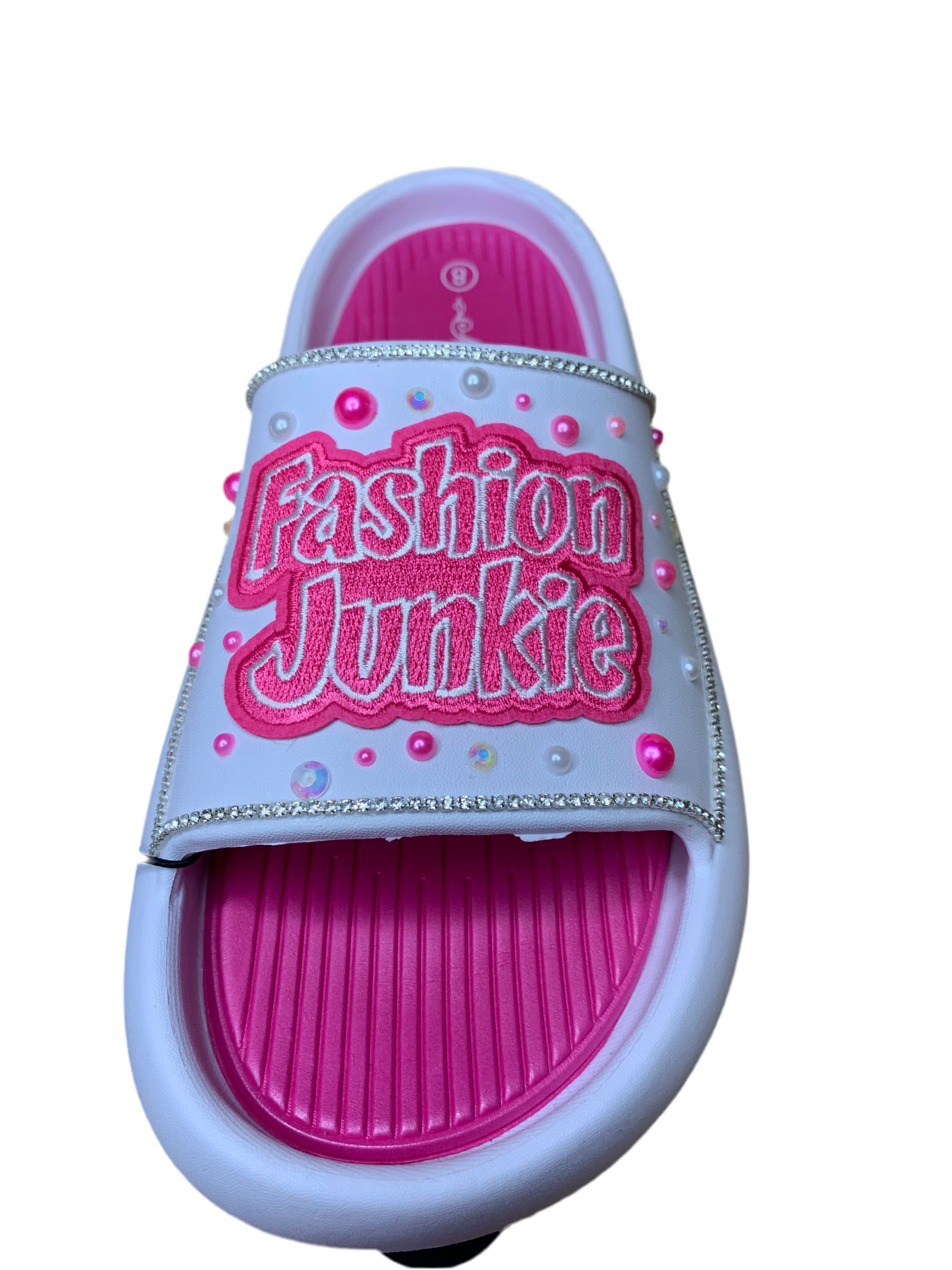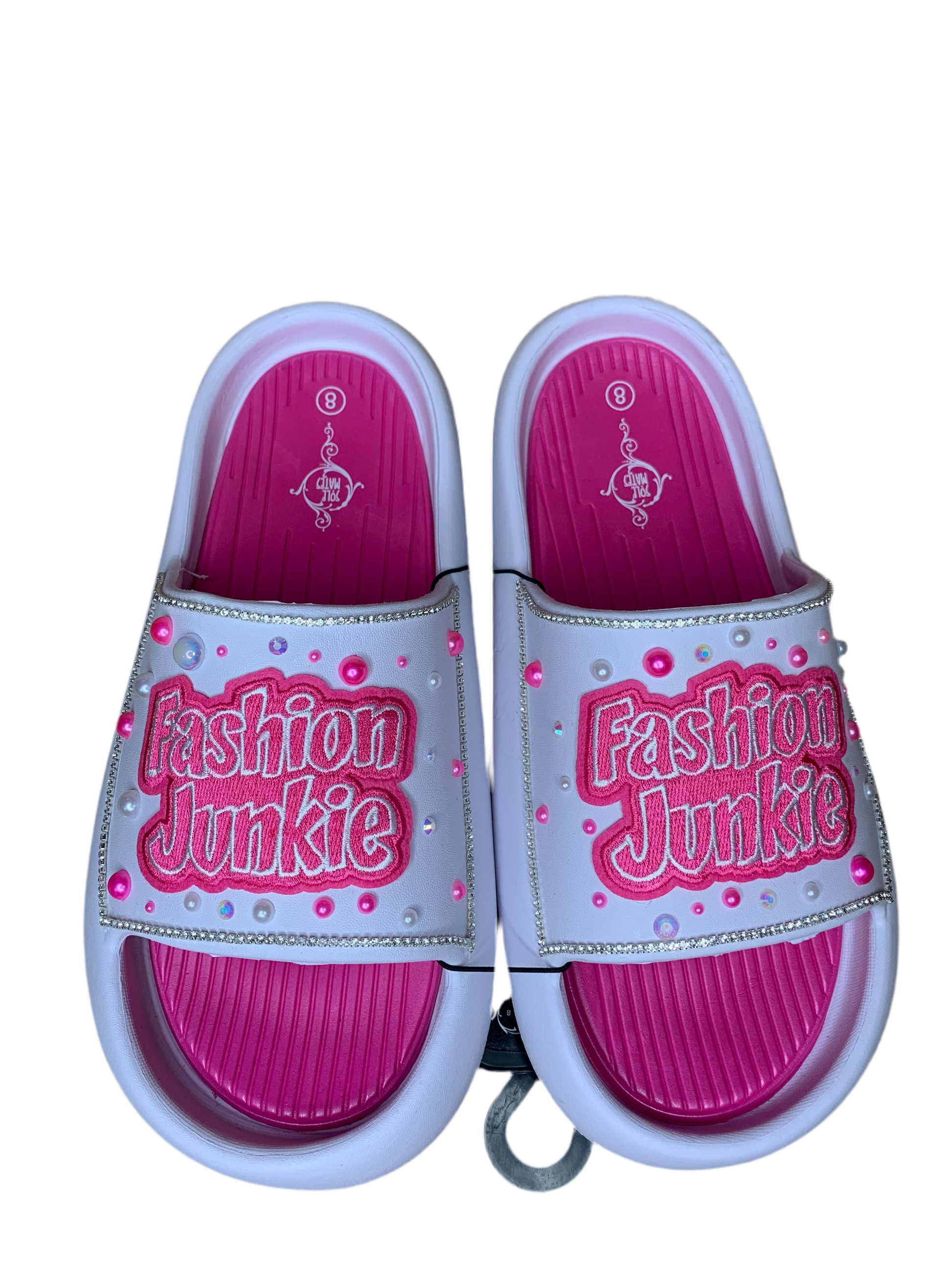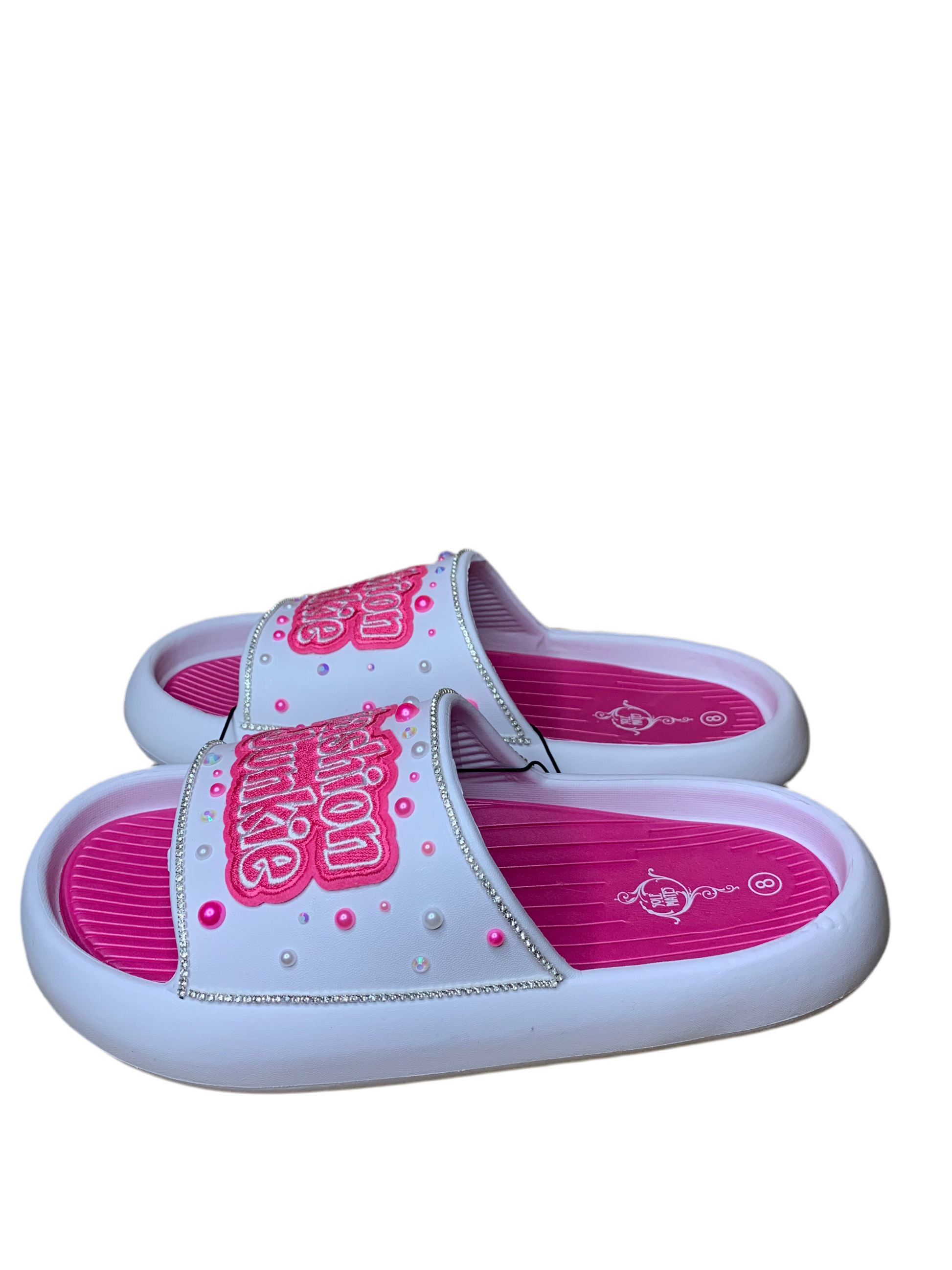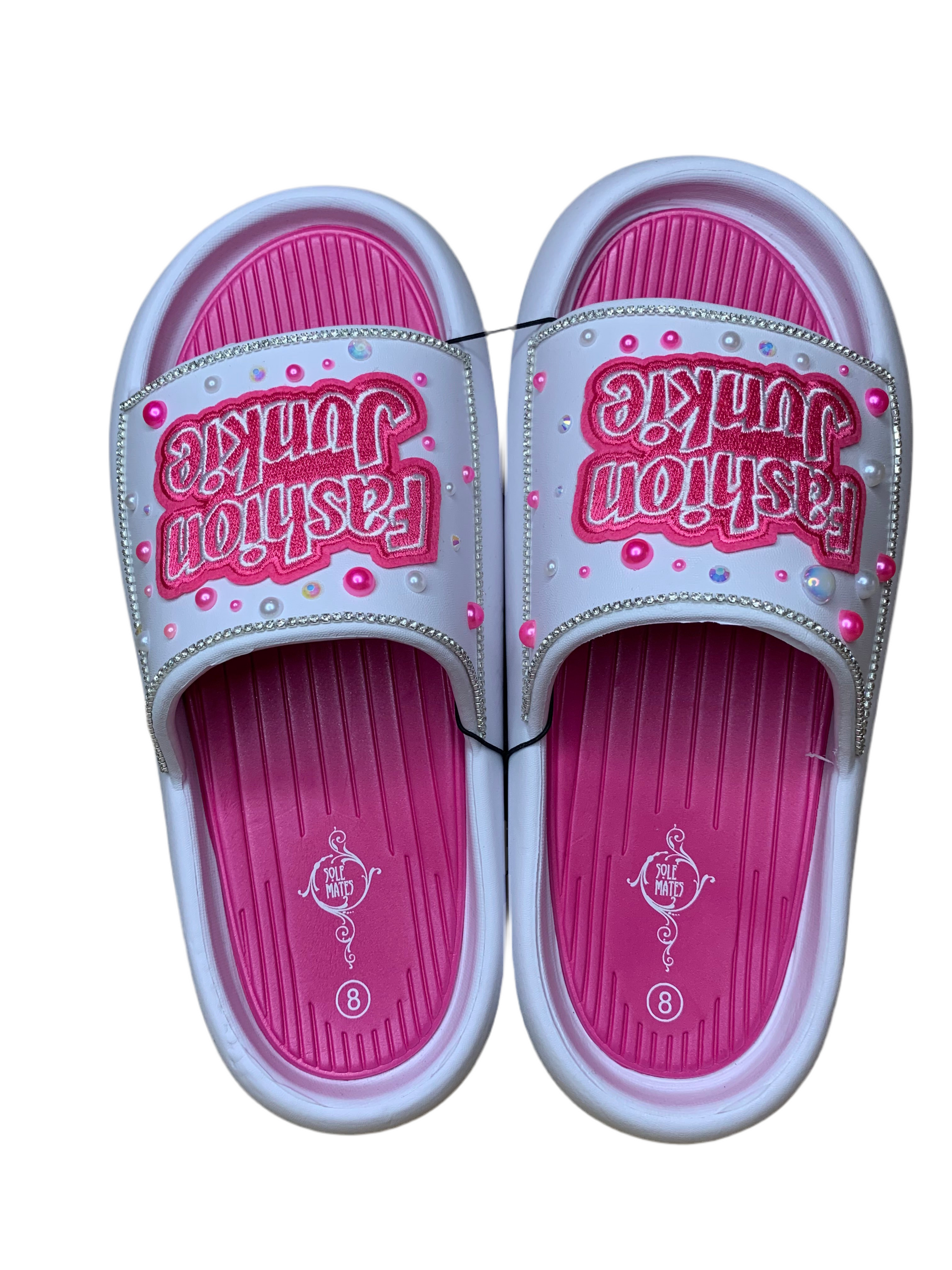 🩷🤍This pretty pink & white set comes with a SnapBack trucker hat that’s adjustable to fit all with the SnapBack & chunky slides size 8😘