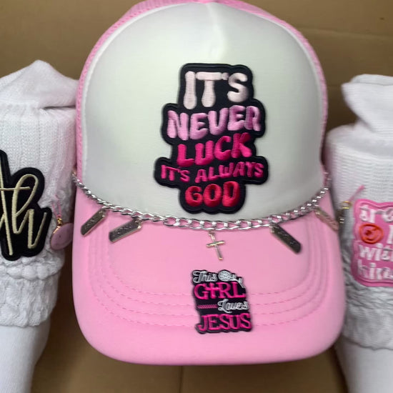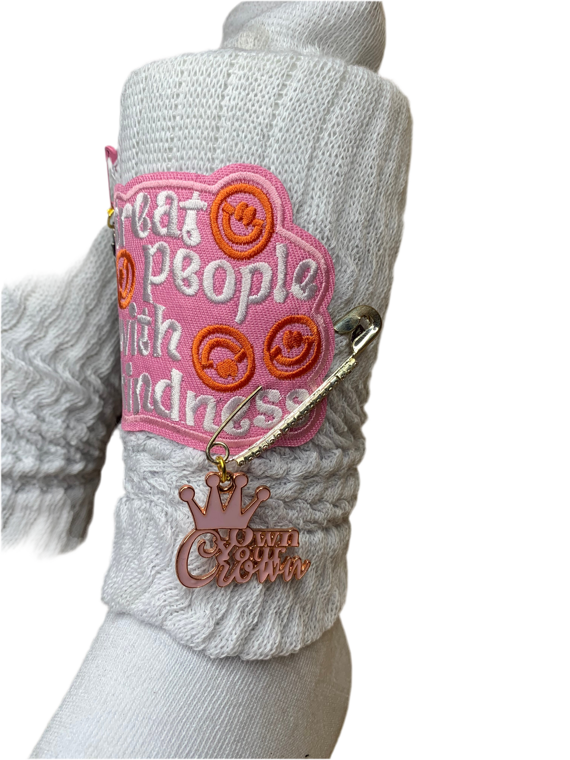 This set comes with these trendy slouch socks & a matching SnapBack trucker hat that’s a one size fits all with the SnapBack.Everything is designed with charms & patches to fit your style